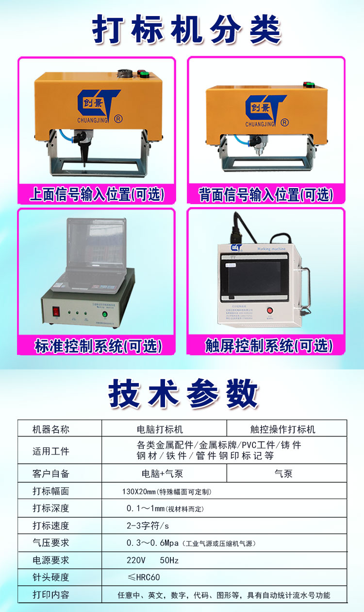 激光打標機系列 氣動打標機系列(電動/鋼印) 定制機(凹印/激光) 電化學腐蝕機系列 噴碼機系列 手動銘牌機,/電刻筆 焊接/切割